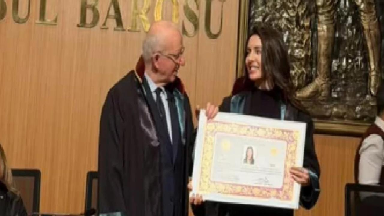 26 yaşındaki oyuncu, cübbesini giyerek Türkiye Barolar Birliği’ne bağlı İstanbul Barosu’ndan avukatlık ruhsatını teslim aldı. Oyunculuğun yanı sıra hukuk alanında da ilerleyen Türkmen, kariyerinde yeni bir sayfa açtı.