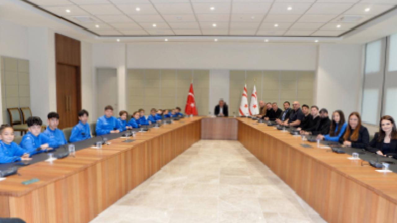 Cumhurbaşkanı Erhürman kabulde yaptığı konuşmada Perçinci Futbol Okulu’ndan sporcuları, yöneticileri ve aileleri görmekten duyduğu memnuniyeti ifade etti.
