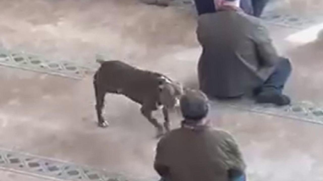 Köpeğin cami içinde dolaştığı anlar cep telefonuyla görüntülendi.
