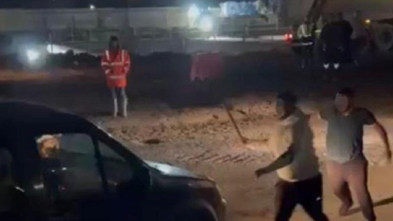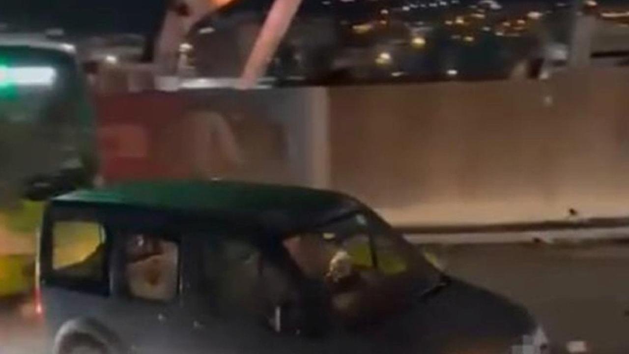 Cep telefonu kamerasına yansıyan görüntülerde taraflardan birinin hafif ticari araca sopa ile saldırdığı, öfkelenen hafif ticari araç sürücüsünün ise geri manevra yaparak arkasındaki yolcu otobüsü ve taksiye, ardından da otomobile çarptığı görüldü.