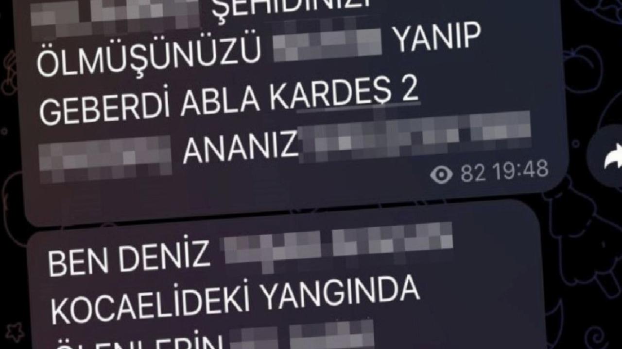 Olayın ardından "Kocaeli İnfaz Yayın" isimli bir Telegram sayfasında, yangında ölen vatandaşlara yönelik küfürlü ve hakaret içerikli paylaşımlar yapıldığı ortaya çıktı.