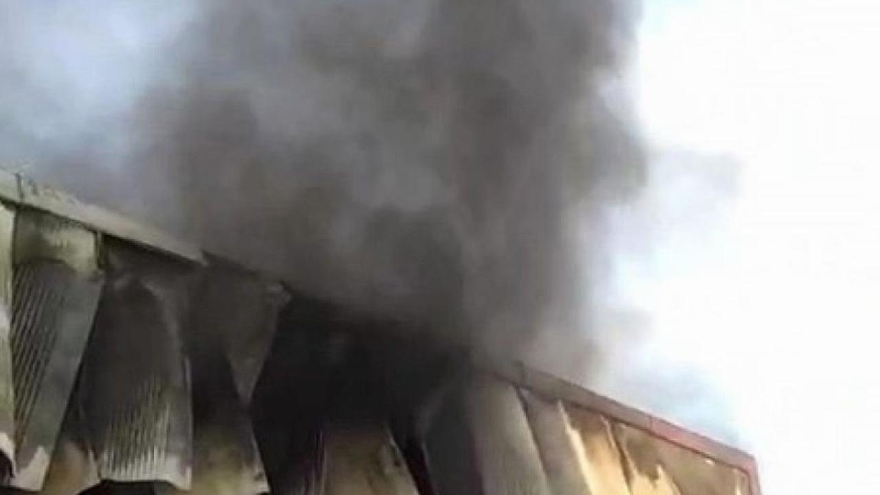 Görüntülerde, tesisten yoğun dumanların yükseldiği ve tesisin alev alev yandığı anlar yer alıyor.