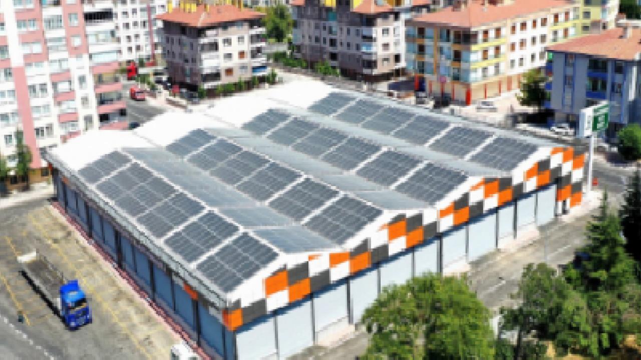 Kalenderhane Mahallesi pazar market çatısındaki 300 kWe santral: Yıllık 450 MWh üretim yapıyor.