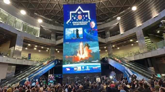 Konya Büyükşehir Belediyesi tarafından şehre kazandırılan Türkiye’nin TÜBİTAK destekli ilk ve en büyük bilim merkezi olan Konya Bilim Merkezi içerisinde kurulan dev ekrandan tarihi anları takip eden öğrenciler ve aileleri, fırlatma töreninin büyük heyecanına ortak oldu.