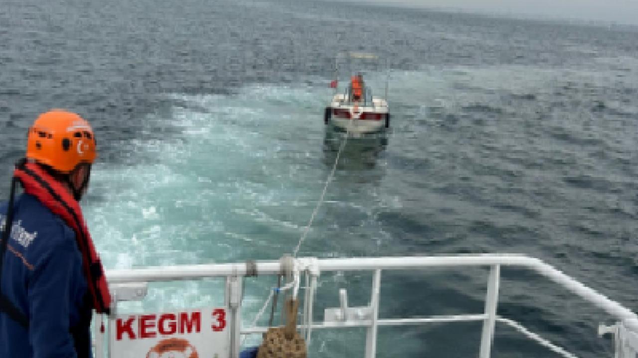 Bölgeye sevk edilen KEGM-3 hızlı tahlisiye botu, arızalı tekneyi yedekleyerek Küçükyalı Balıkçı Barınağı’na ulaştırdı.