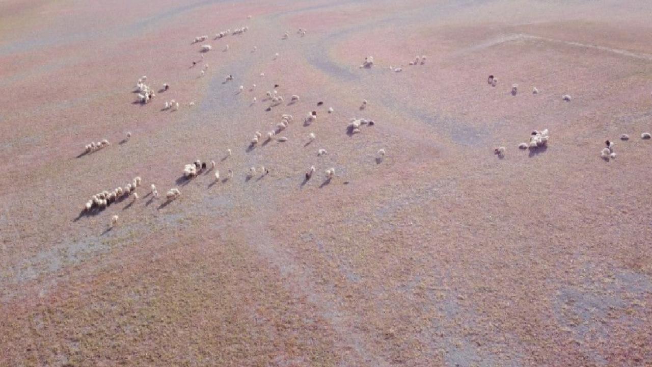 Kuraklığın şiddetini gözler önüne seren görüntülerde, baraj havzasındaki çatlamış toprak ve hayvanların yayıldığı alan dikkat çekti.