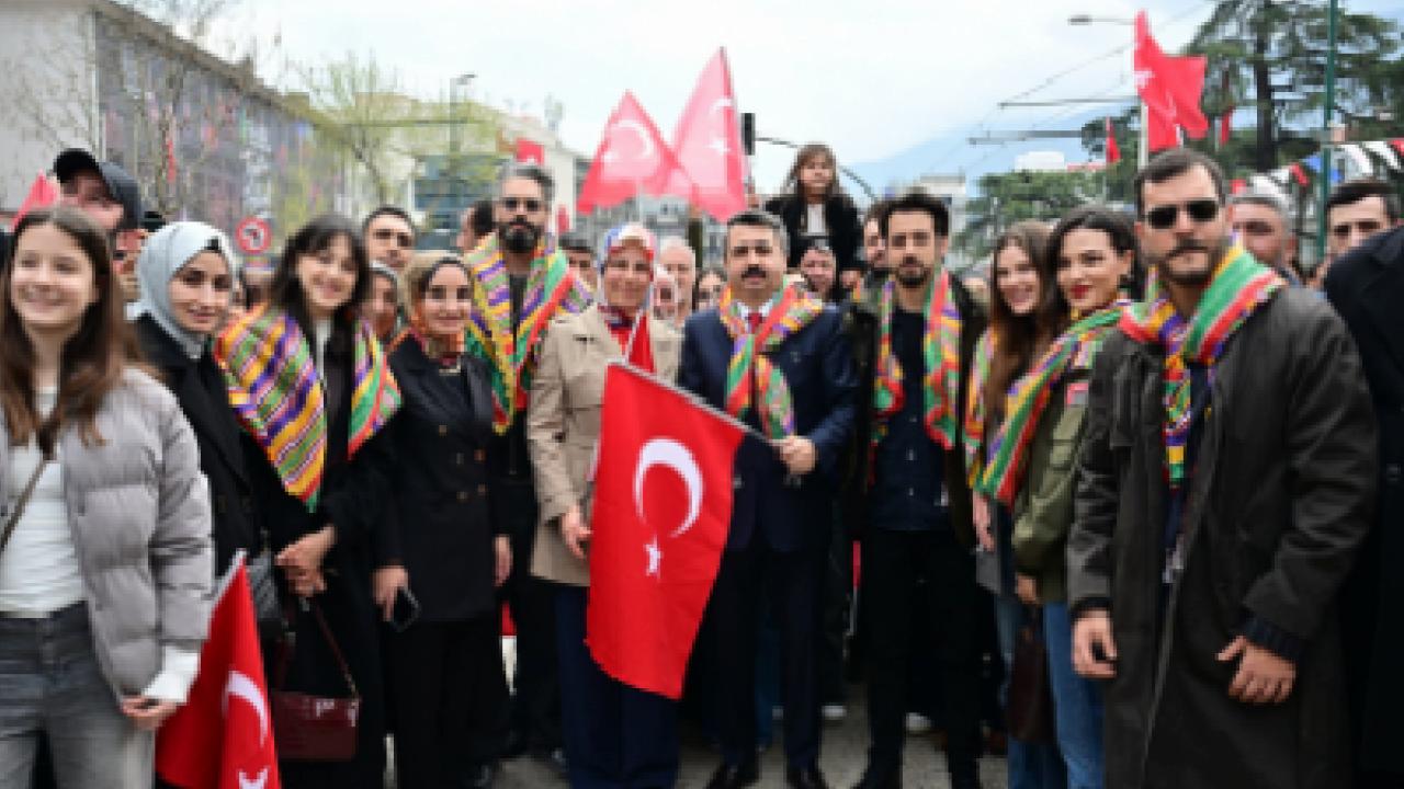 Konuşmasında birlik ve beraberlik vurgusu yapan Başkan Yılmaz; “Bizler birlik, beraberlik ve kardeşlik duygularına sahip güçlü bir milletiz. 700 yıl önce Bursa’yı fetheden irade neyse, bugün bu topraklarda kardeşliği yaşatan irade ve aynı ruhtur. Aynı inanç, aynı dayanışma ve aynı istikamettir. Biliyoruz ki; beraberlik varsa bereket vardır, güç vardır ve bu millet bir arada oldukça aşamayacağı engel yoktur. Bursa’nın fethinin 700. yılı nedeniyle düzenlediğimiz etkinliklerimizin, birliğimizi ve dirliğimizi güçlendirmemize vesile olmasını temenni ediyorum ” ifadelerini kullandı. Başkan Yılmaz’ın konuşmalarının ardından Kuruluş Orhan dizisi oyuncuları Bursalılarla buluştu. Söyleşi gerçekleştiren oyuncular ardından imza dağıtıp, vatandaşlarla fotoğraf çekildi.