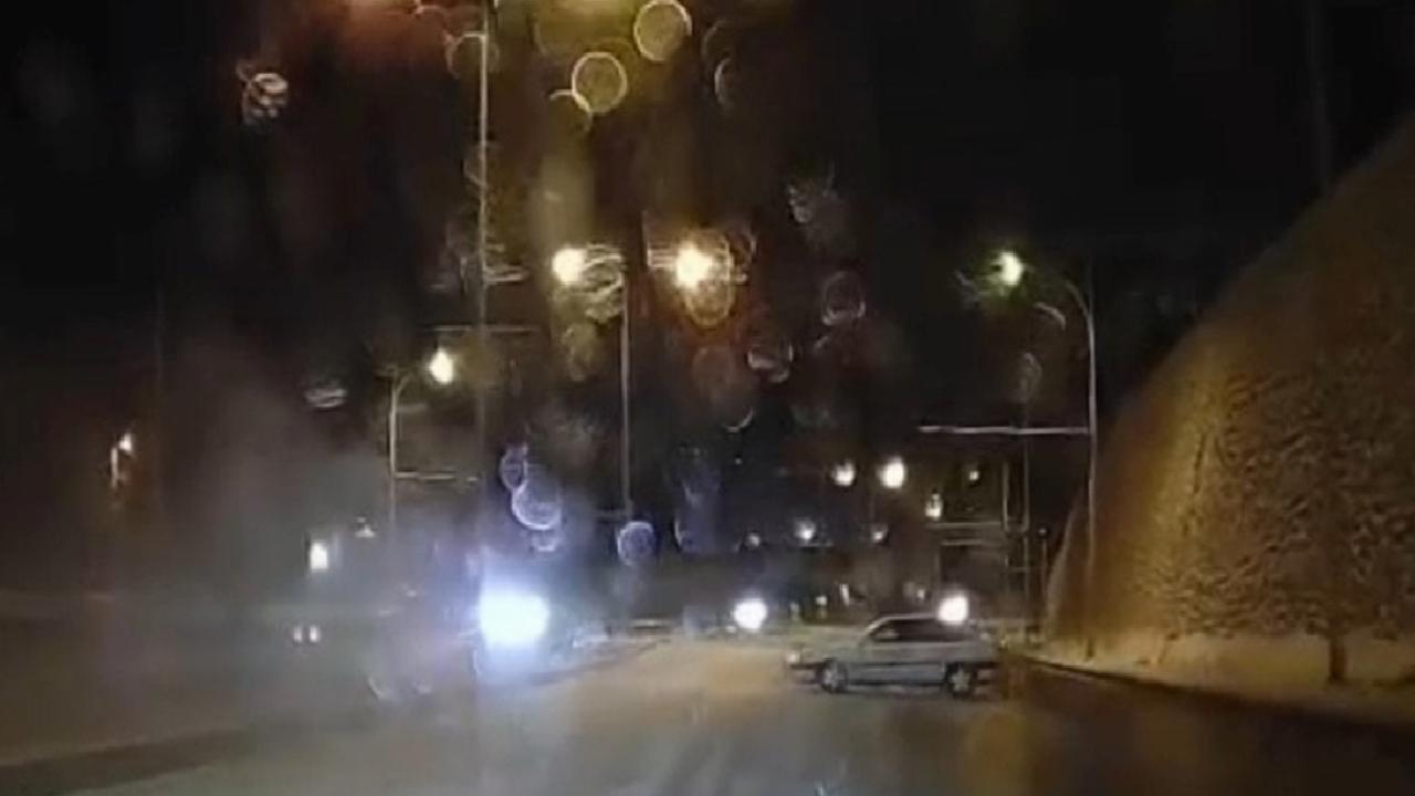 Yaşananlar caddede ilerleyen başka bir aracın kamerasınca görüntülendi.