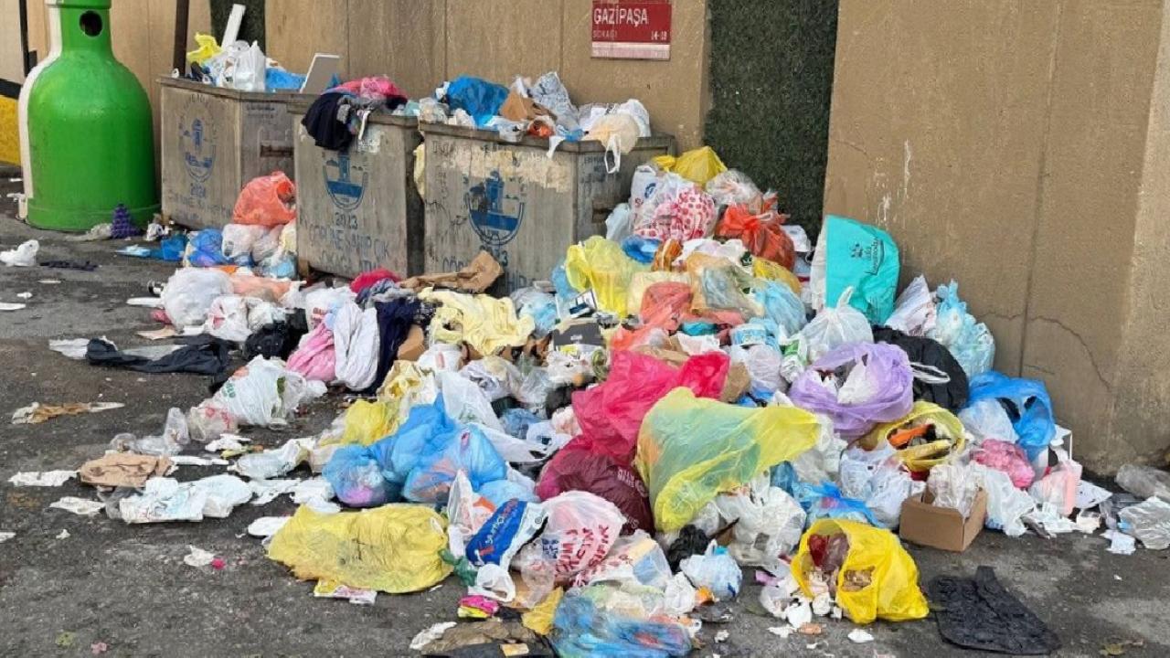 İşçilerin greve gitmesi sonrası toplanmayan çöpleri gören vatandaşlar, kokudan da oldukça rahatsız.