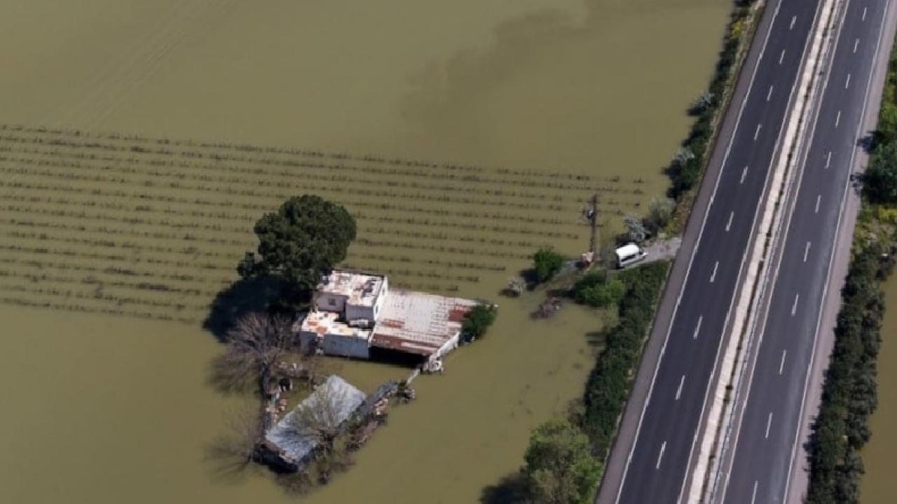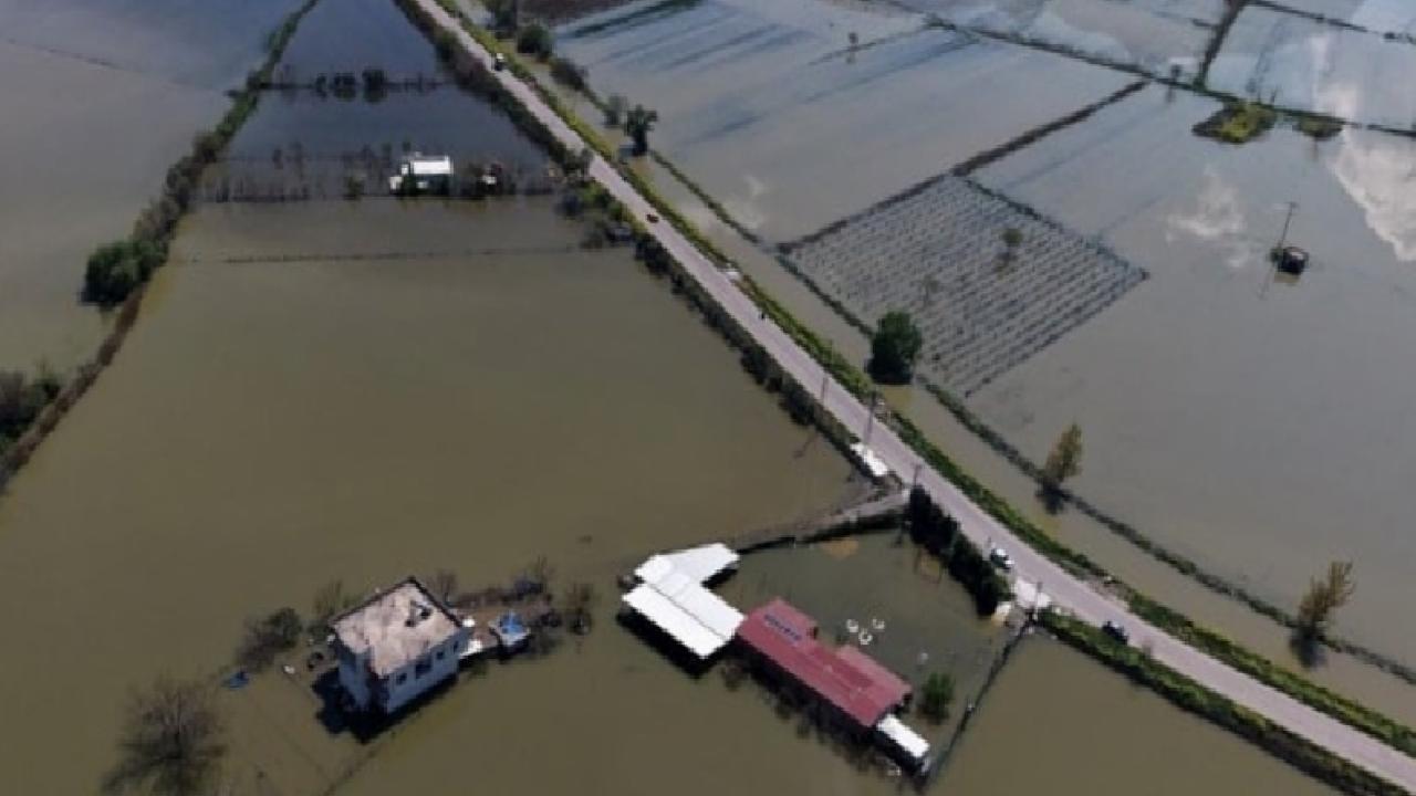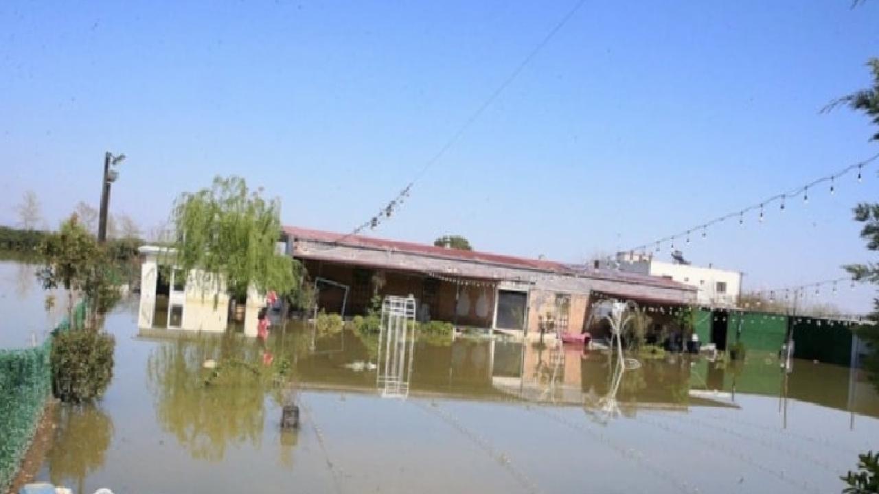 Su basan bağ evi ve hayvan damları drone ile görüntülendi.