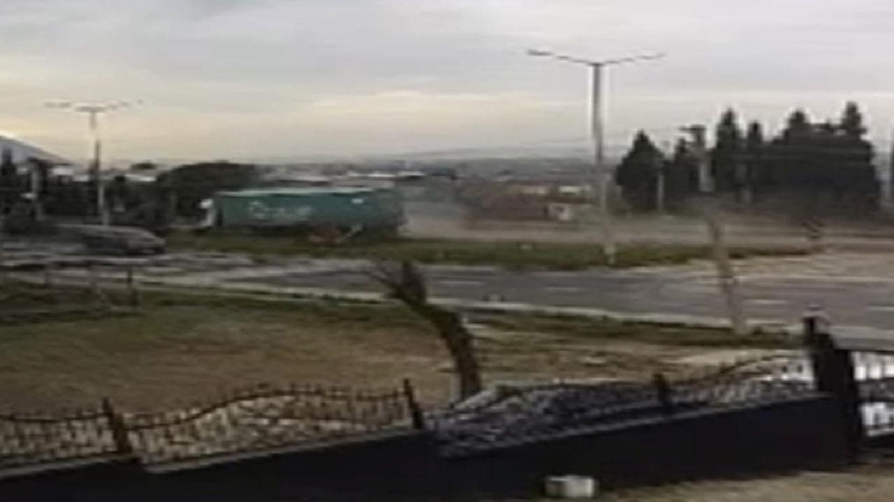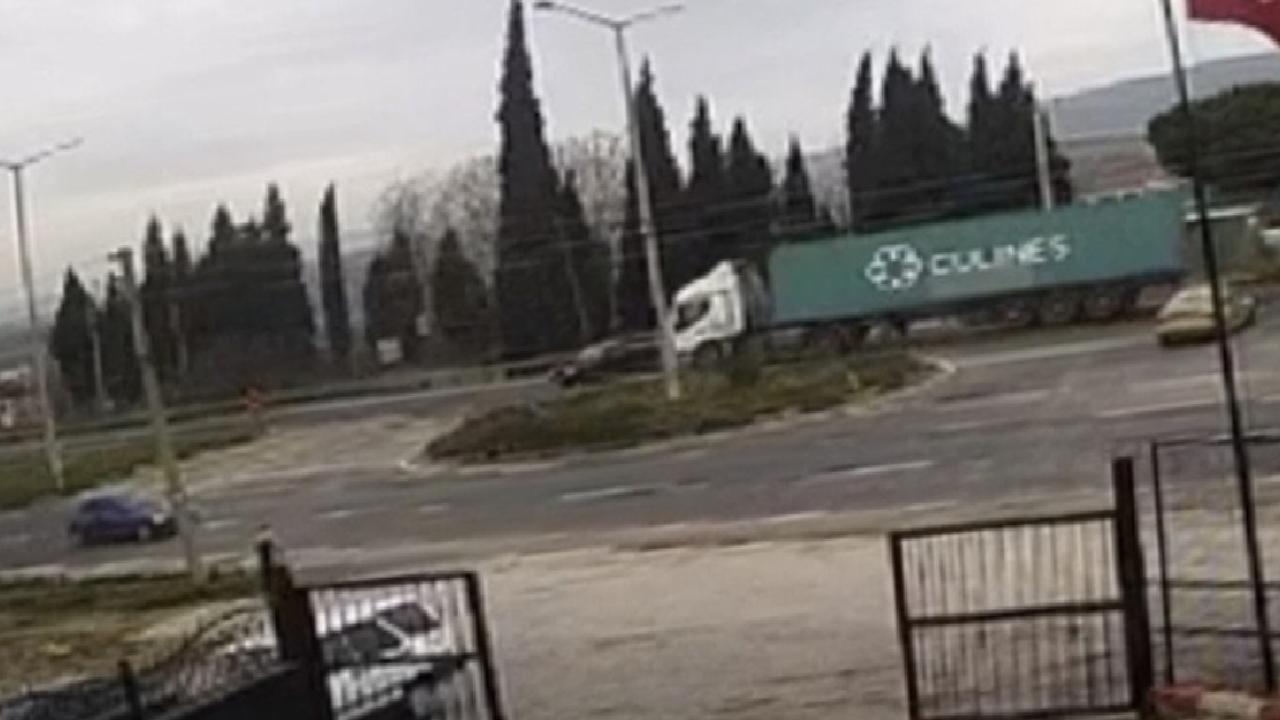 Kaza anı bölgedeki bir iş yerinin güvenlik kamerasınca görüntülendi.