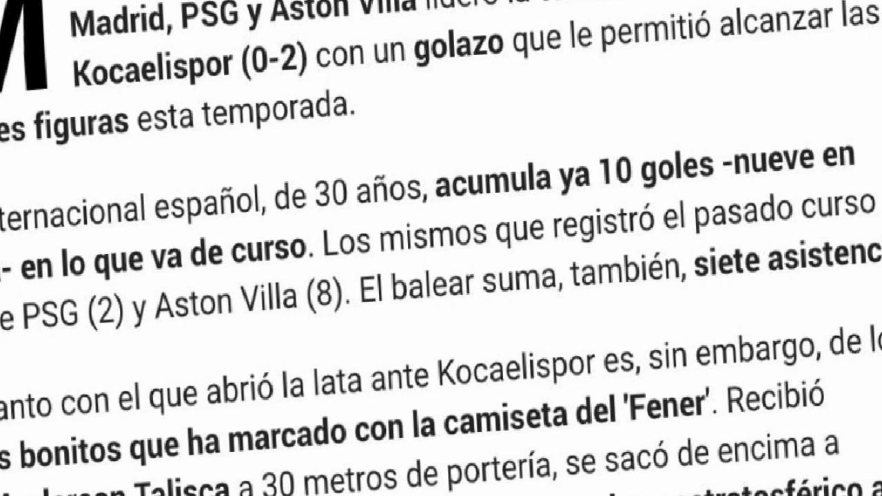 Asensio'nun harika bir performans sergilediği aktarılan haberde, "Asensio, Fenerbahçe'yi Kocaelispor karşısında 2-0'lık galibiyete taşıyan ve bu sezon çifte zafer elde etmesini sağlayan muhteşem bir gol attı." denildi.