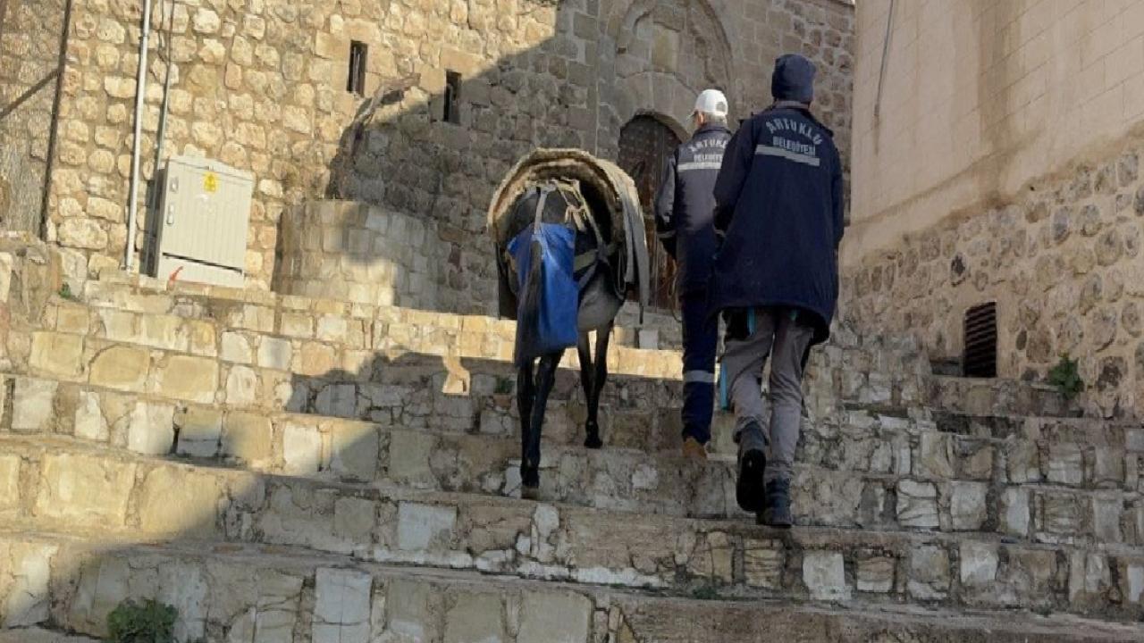 Mardin'in Artuklu ilçesinde uzun yıllardır kentin temizlik çalışmalarında kullanılan kadrolu eşekler, şehrin sembolü haline geldi.