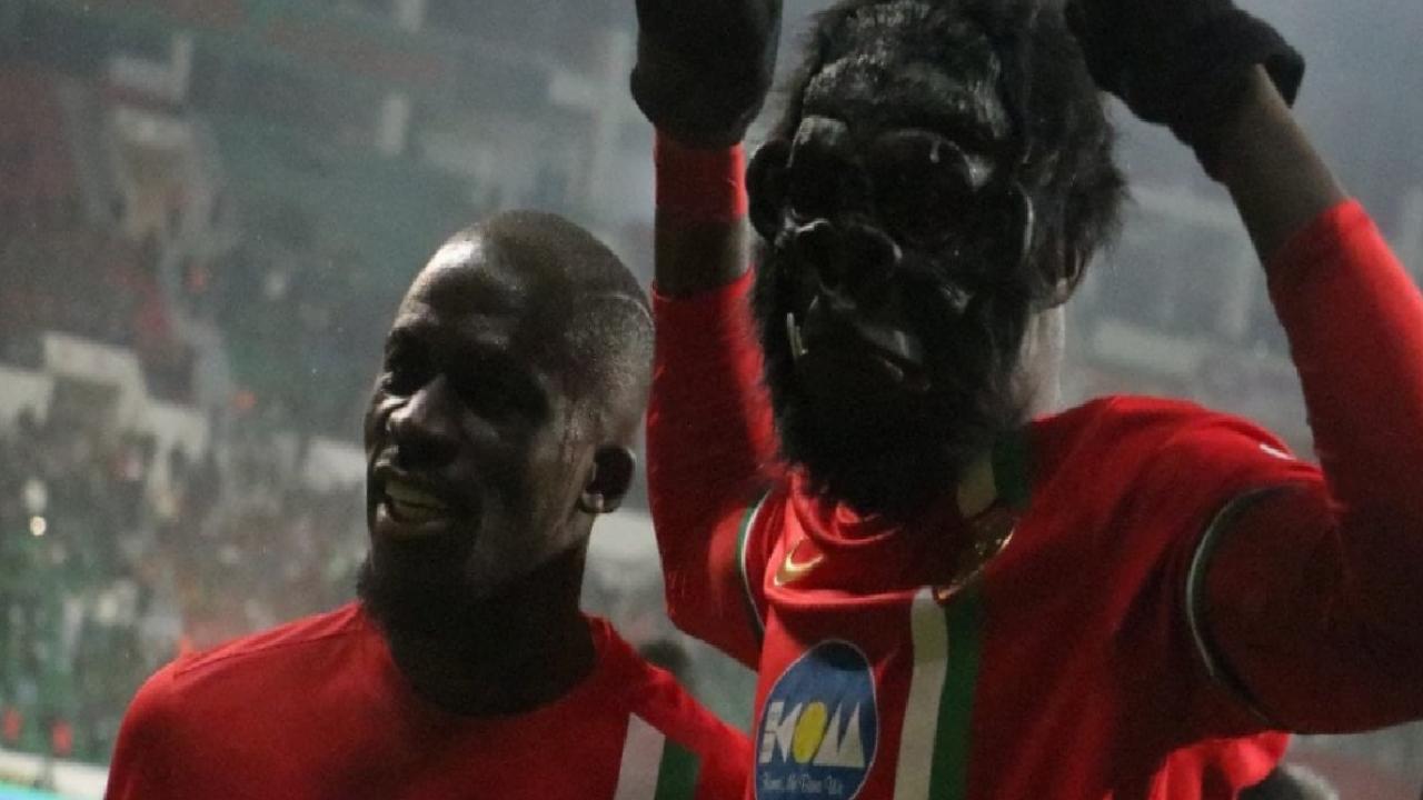 Amed Sportif Faaliyetler forması giyen Senegalli golcü Mbaye Diagne Çorum FK karılaşmasının ardından yayıncı kuruluş röportajına King Kong maskesi ile çıktı.