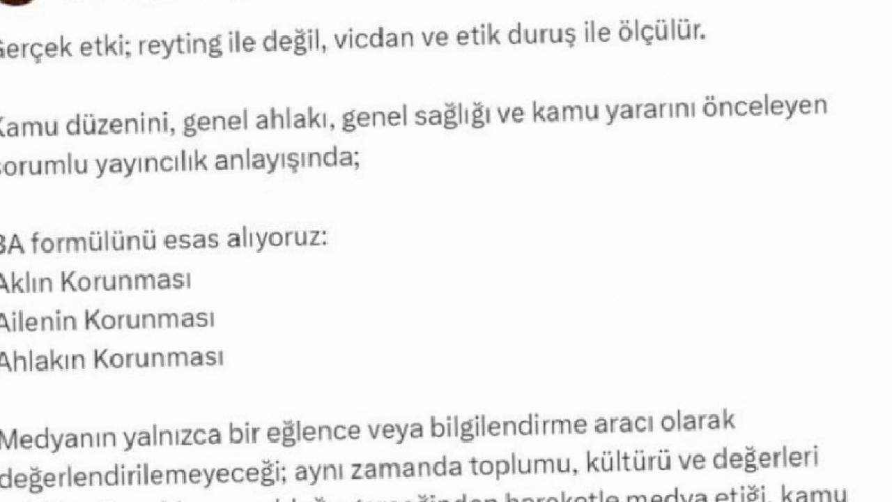 Sosyal medya hesabından değerlendirmede bulunan RTÜK Başkanı Mehmet Daniş, kamu düzenini, genel ahlakı, genel sağlığı ve kamu yararını önceleyen bir yayıncılık anlayışını benimsediklerini belirtti.