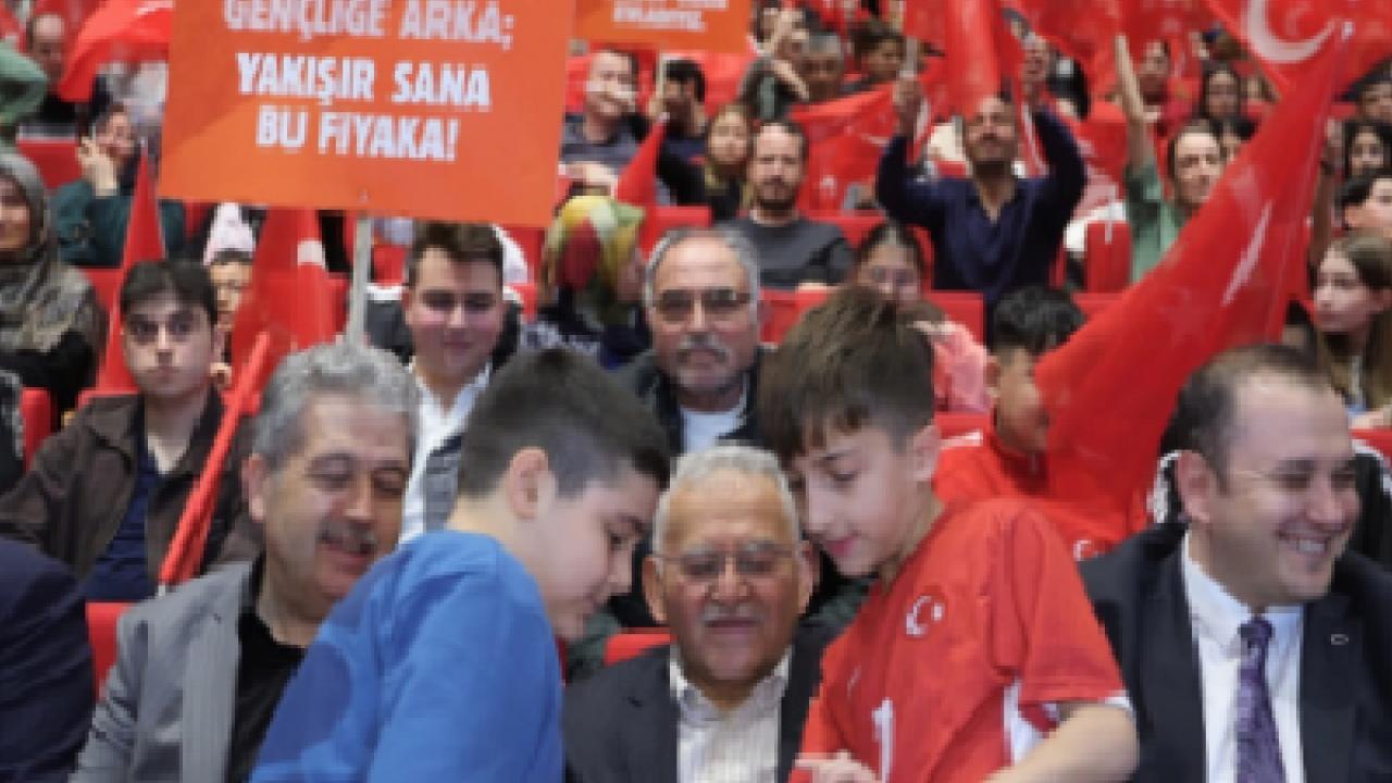 Öğrenci ve genç dostu başkan olarak nitelendirilen Kayseri Büyükşehir Belediye Başkanı Dr. Memduh Büyükkılıç, Kayseri Mesleki Eğitim ve Kültür A.Ş. (KAYMEK) tarafından Çanakkale Deniz Zaferi’nin 111. yıl dönümü kapsamında düzenlenen “Bir Milletin Fedakârlığı, Bir Bayrağın Hürriyeti: Çanakkale” programına katıldı. Programa Başkan Büyükkılıç’ın yanı sıra AK Parti Kayseri Milletvekili S. Bayar Özsoy, AK Parti Kayseri İl Başkan Vekili Muammer Topsakal ve Türkiye Harp Malulü Gaziler Şehit Dul ve Yetimleri Derneği Kayseri Şube Başkanı Ali Yavuz, Büyükşehir Belediyesi Genel Sekreter Yardımcısı Fatih Temeltaş ile KAYMEK öğrencileri ve veliler katıldı.