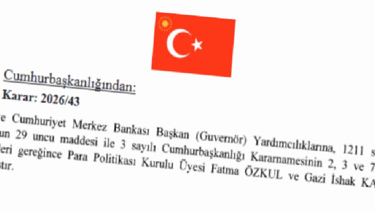 Buna göre Para Politikası Kurulu Üyesi Fatma Özkul ile Gazi İshak Kara, Merkez Bankası Başkan Yardımcılıklarına atandı.