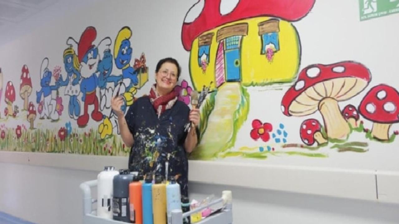 Sanatçı, özellikle çocukların ilgisini çekebilecek karakterlere yer vererek poliklinik duvarlarına “Mickey Mouse” ve “Şirinler” gibi sevilen çizgi film figürlerini resmetti.