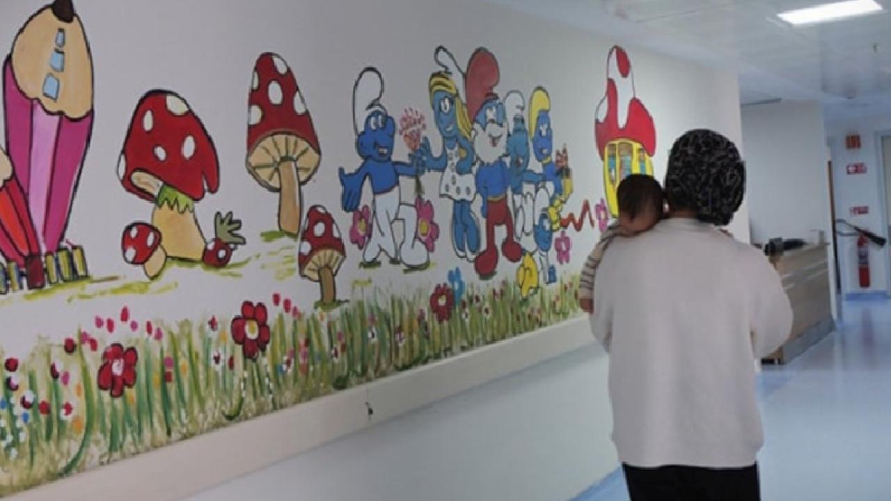 Hazar, tedavi gören çocukların hastane ortamında kendilerini daha iyi hissetmeleri için poliklinik duvarlarını renkli resimlerle süsledi.