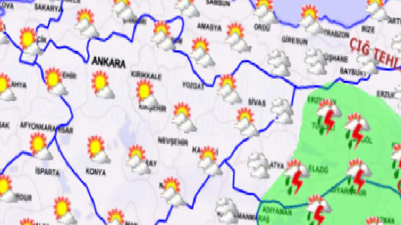 ANKARA () - Meteoroloji Genel Müdürlüğü, 7 Nisan Salı gününe ilişkin hava tahmin raporunu yayımladı. Yapılan son değerlendirmelere göre, Marmara'nın kuzey ve doğusu, Doğu Akdeniz'in doğusu, İç Anadolu'nun kuzey ve doğusu, Karadeniz, Doğu ve Güneydoğu Anadolu ile Antalya'nın iç kesimleri ve Kütahya çevrelerinin aralıklı sağanak ve gök gürültülü sağanak, Doğu Anadolu'nun yüksek kesimlerinin karla karışık yağmur ve yer yer kar yağışlı geçeceği, yağışların Güneydoğu Anadolu'nun doğusu ile Osmaniye çevrelerinde yer yer kuvvetli olacağı tahmin ediliyor.