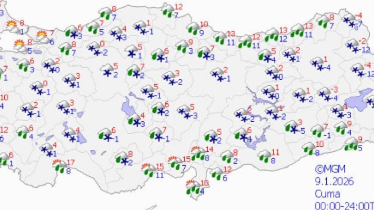 Cuma günü ise yurdun büyük bir bölümünde kar yağışı bekleniyor.
