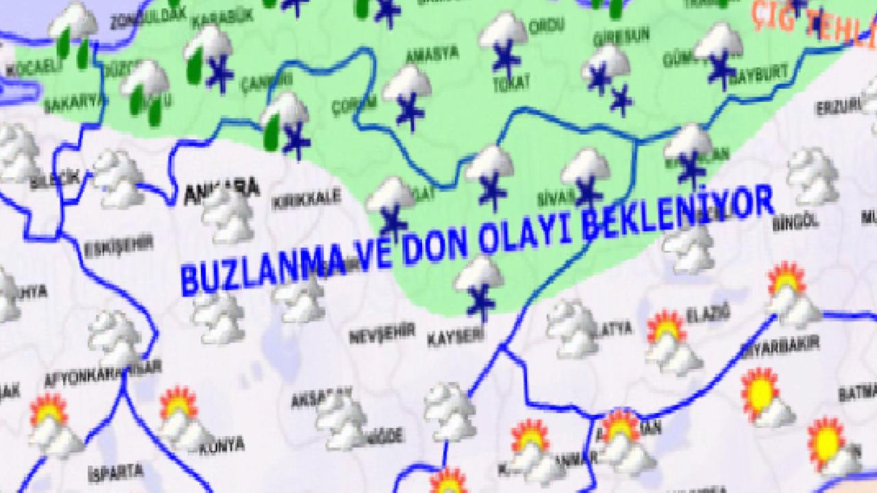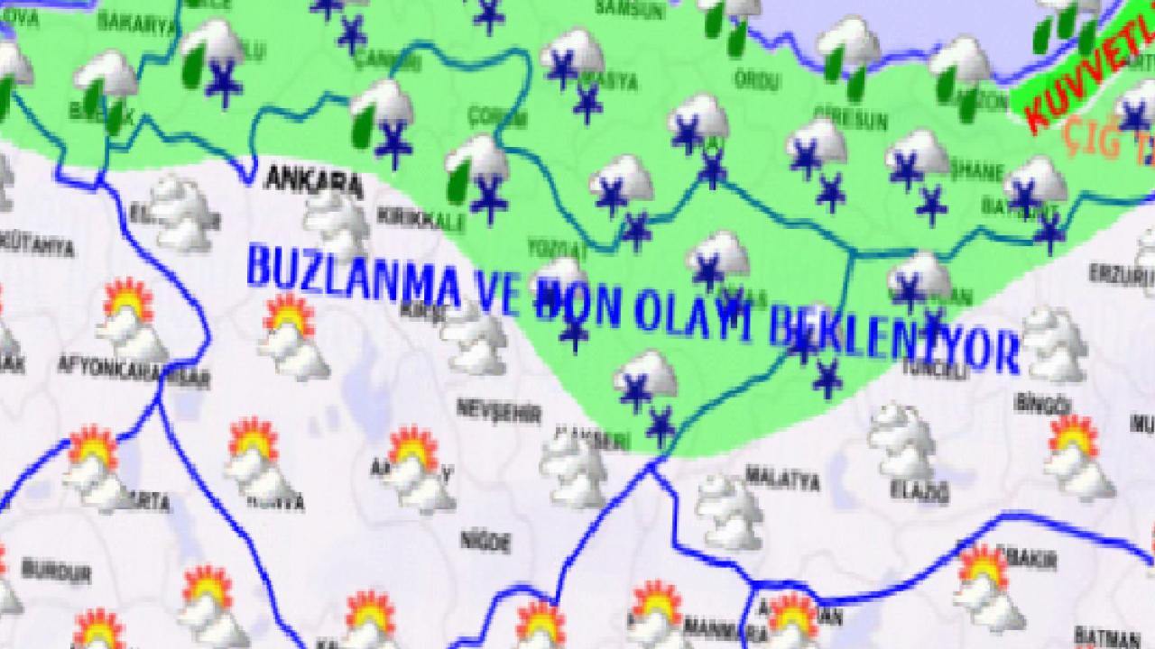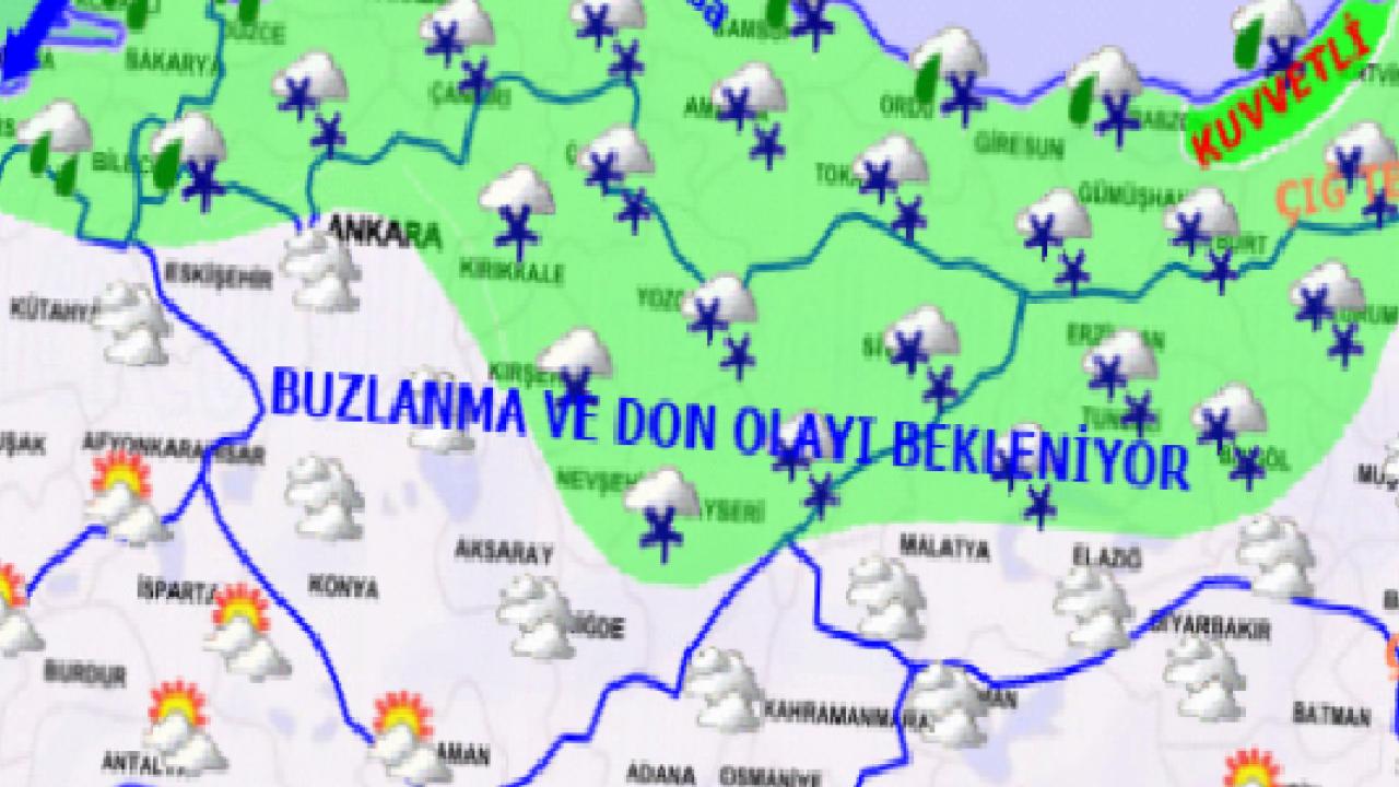Ülkemizin iç ve doğu kesimlerinde buzlanma ve don olayı ile birlikte pus ve yer yer sis beklendiğinden yaşanabilecek olumsuzluklara karşı dikkatli ve tedbirli olunması gerekmektedir.