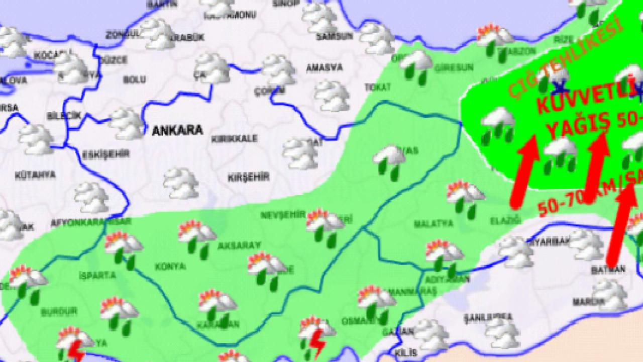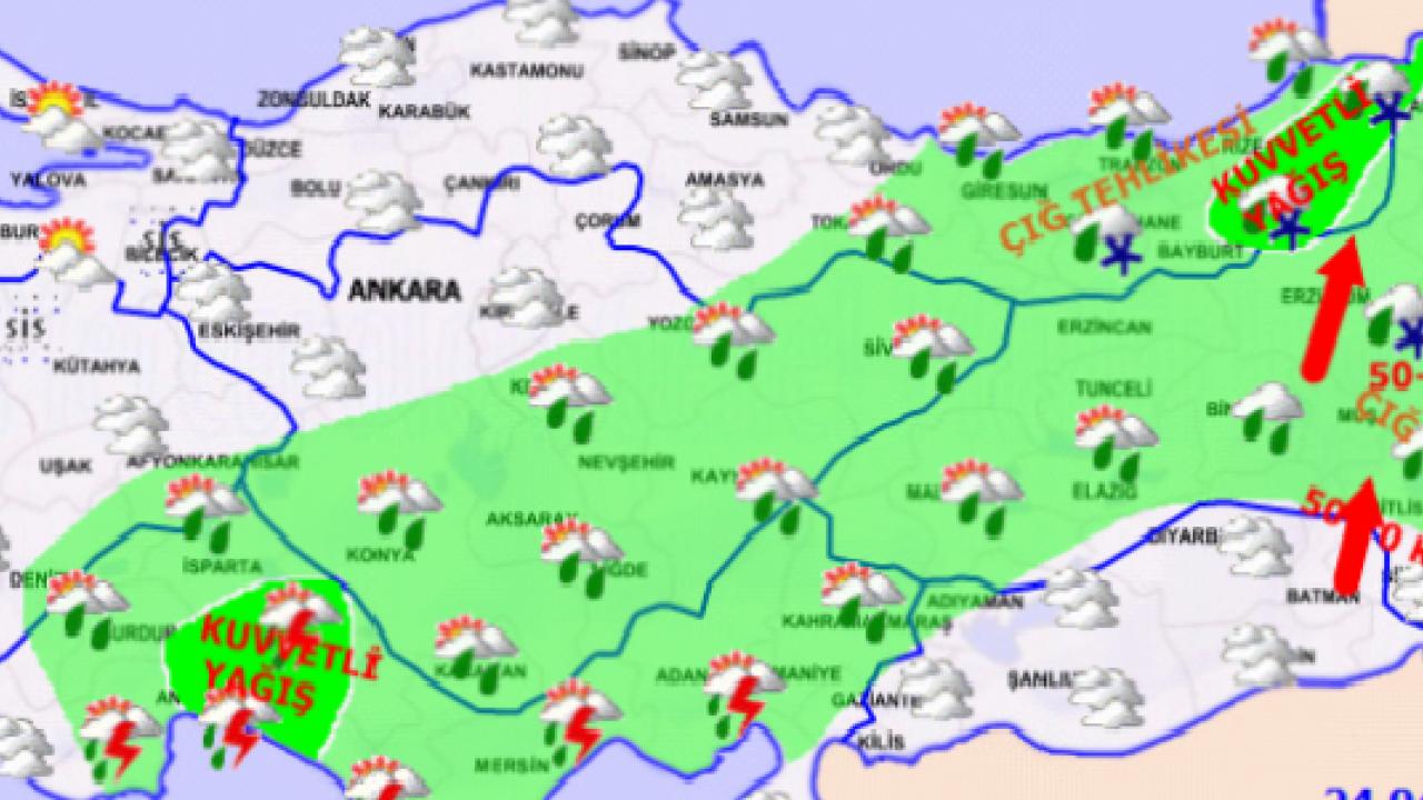 Yağışların; Doğu Karadeniz'in iç kesimleri, Doğu Anadolu’nun kuzeyi ile Antalya, Bingöl ve Muş çevrelerinde yer yer kuvvetli olması bekleniyor. Doğu Karadeniz'in iç kesimleri ile Doğu Anadolu'da yüksek kar örtüsüne sahip eğimli alanlarda çığ ve kar erimesi tehlikesi bulunmaktadır.