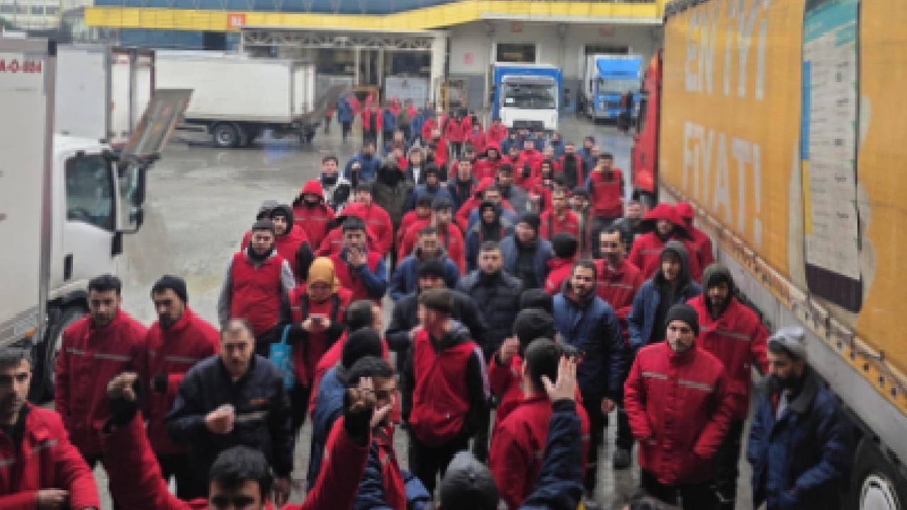 Depo işçileri, yaptığı açıklamada, “yüzde 28’lik sefalet dayatmasına karşı ayaktayız. İş bırakma ve iş yavaşlatma eylemlerimiz artarak devam edecektir” ifadelerini kullandı.