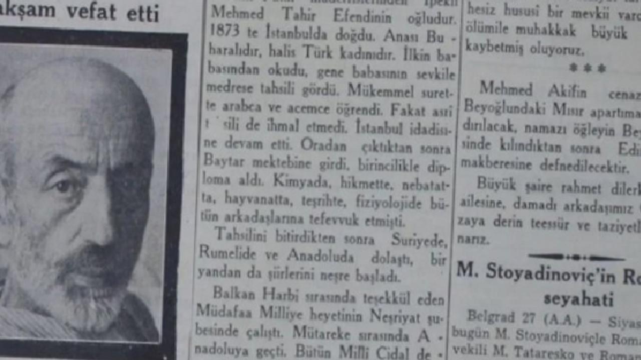 Mehmet Akif’in ölümüyle ilgili bir gazete haberi (Cumhuriyet, 28 Aralık 1936).