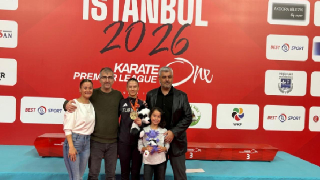 KOCAELİ () - 63 ülkeden 373 sporcunun mücadele ettiği Karate1 Premier Lig İstanbul etabında Kadınlar 61 kg kumite kategorisinde tatamiye çıkan 24 yaşındaki Fatma Naz Yenen, sergilediği üstün performansla finale yükseldi. Final müsabakasında Belçikalı rakibini 4-3 mağlup eden başarılı sporcu, şampiyonluk kürsüsünün zirvesine çıkarak altın madalyanın sahibi oldu.