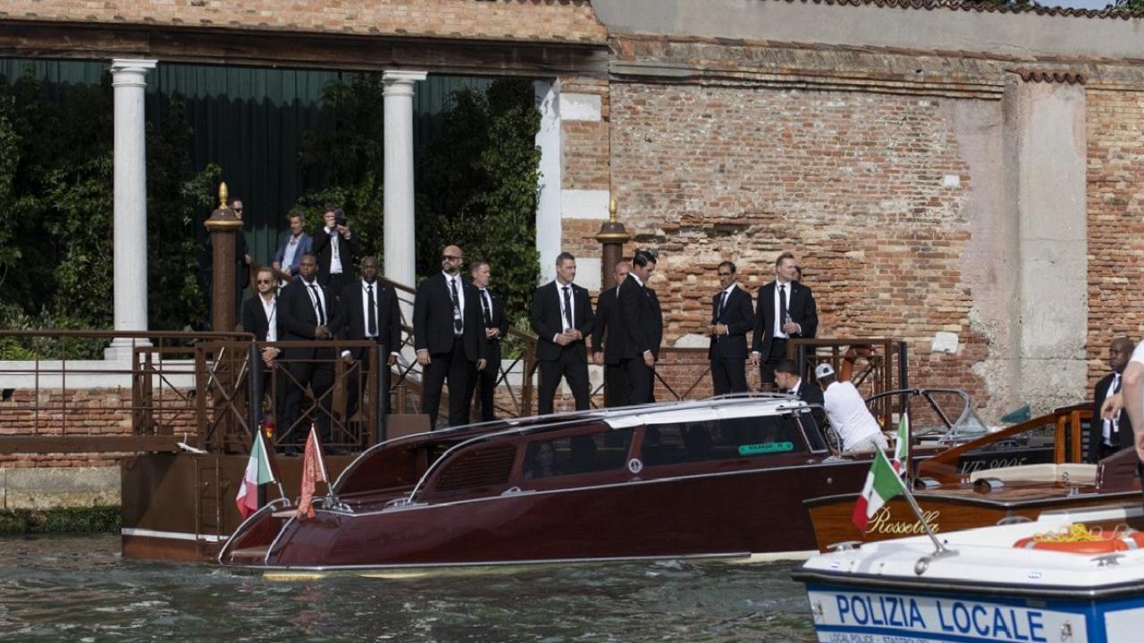 San Giorgio Adası'nda İtalyan polisinin geniş güvenlik önlemleri altında gerçekleşen düğüne çok sayıda ünlü davetli katıldı.
