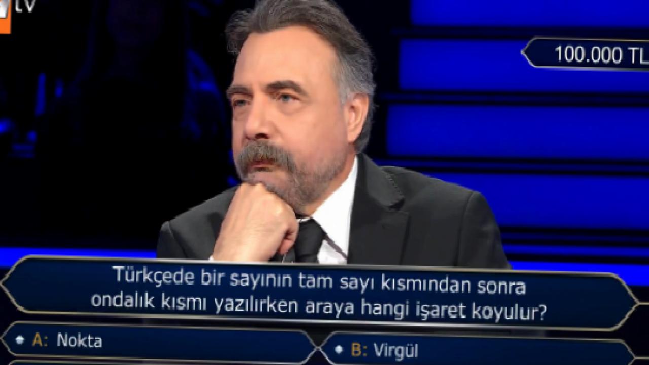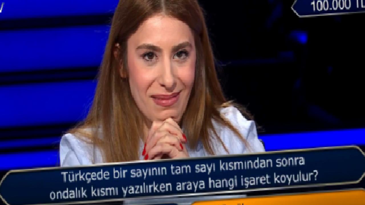 Oktay Kaynarca’nın sunumuyla ekrana gelen yarışmada, Türk Dili ve Edebiyatı bölümü mezunu olan yarışmacıya yöneltilen soru dikkat çekti. Yarışmacıya, “Türkçede bir sayının tam sayı kısmından sonra ondalık kısmı yazılırken araya hangi işaret koyulur?” sorusu soruldu.