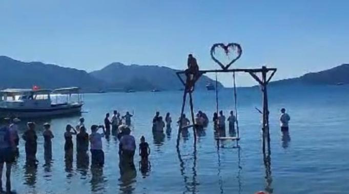 İngiliz turistin küllerinin denize bırakılması için Uzunyalı sahilinde düzenlenen törene ait ortaya çıkan görüntülerde ise denizin kıyısına kadar giren bir grup İngiliz turistin, külleri denize bırakması yer aldı.