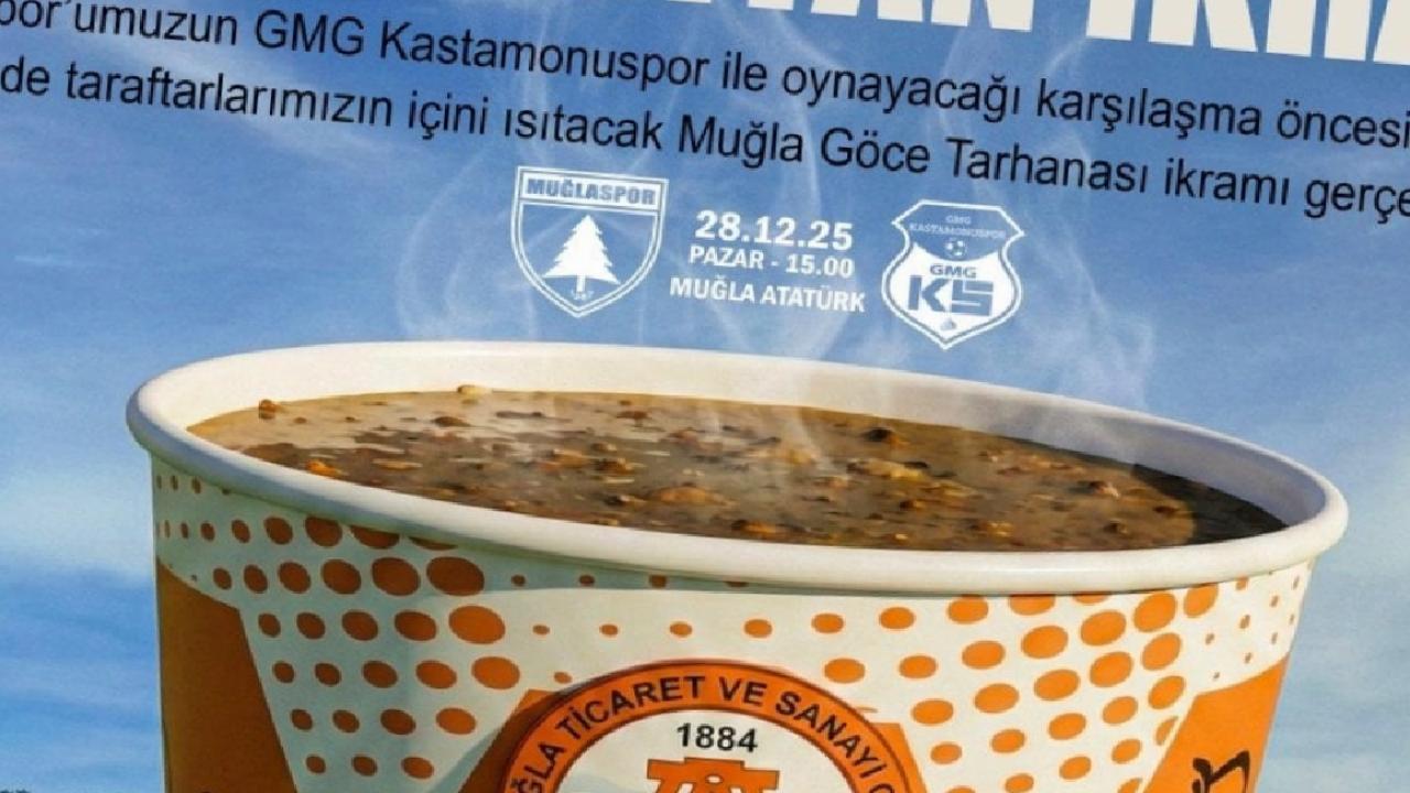 Muğlasporumuzun, Kastamonuspor ile oynayacağı yılın ve ligin ilk devresinin son karşılaşması öncesinde, soğuk maç gününde taraftarlarımızın içini ısıtacak Muğla Göce Tarhanası ikramı gerçekleştirilecektir. 28 Aralık Pazar günü saat 15.00’te Muğla Atatürk Stadyumu’nda oynanacak karşılaşma öncesinde, stadyum çevresinde taraftarlarımıza tarhana ikramında bulunulacaktır. Kulübümüz ile Muğla Ticaret ve Sanayi Odası (MUTSO) iş birliğiyle yapılacak organizasyonda Muğla’nın yerel lezzetlerinden Muğla Göce Tarhanası taraftarlarımıza ikram edilecek. Yılın ve ligin ilk devresinin bu son maçında, yeşil-beyaz sevdamıza güç vermek ve tribünleri birlikte doldurmak için tüm taraftarlarımızı maç öncesinden itibaren stadyumumuza davet ediyoruz.