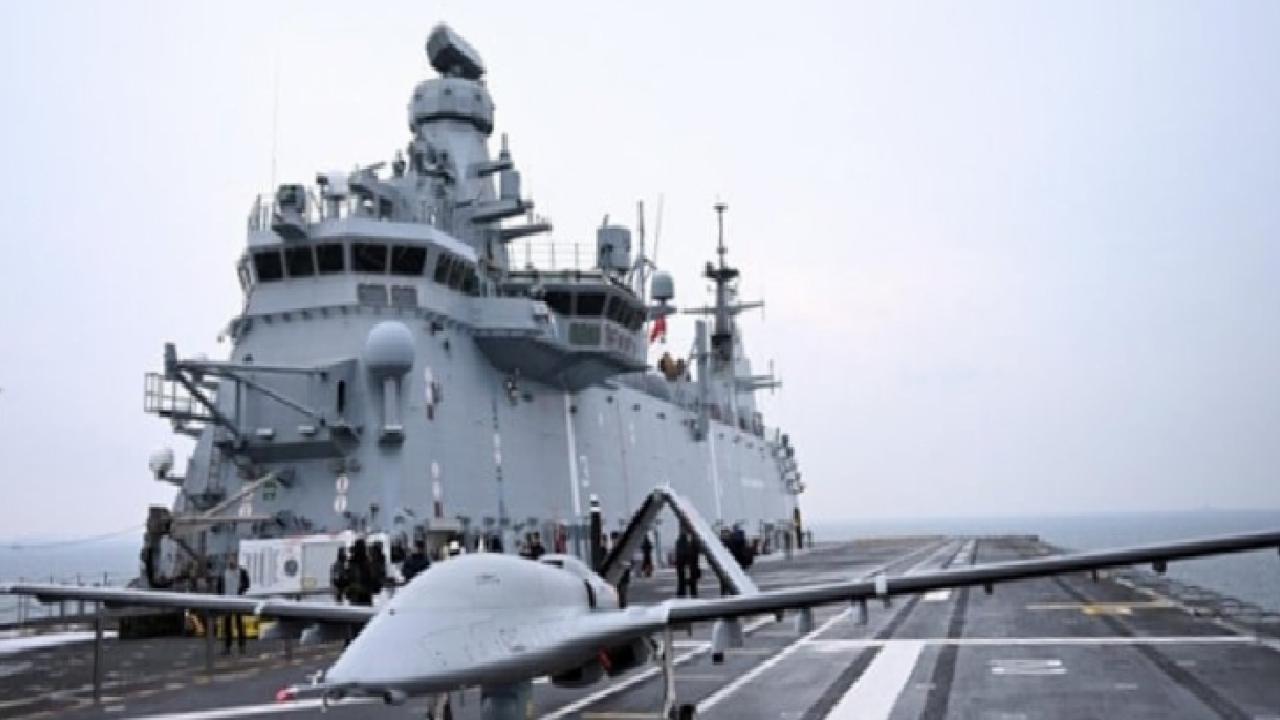 TCG Anadolu'dan havalanan Bayraktar TB3'ün deniz hedefine yönelik canlı atış testinin NATO tarihinde bir ilk olduğuna dikkat çekildi.