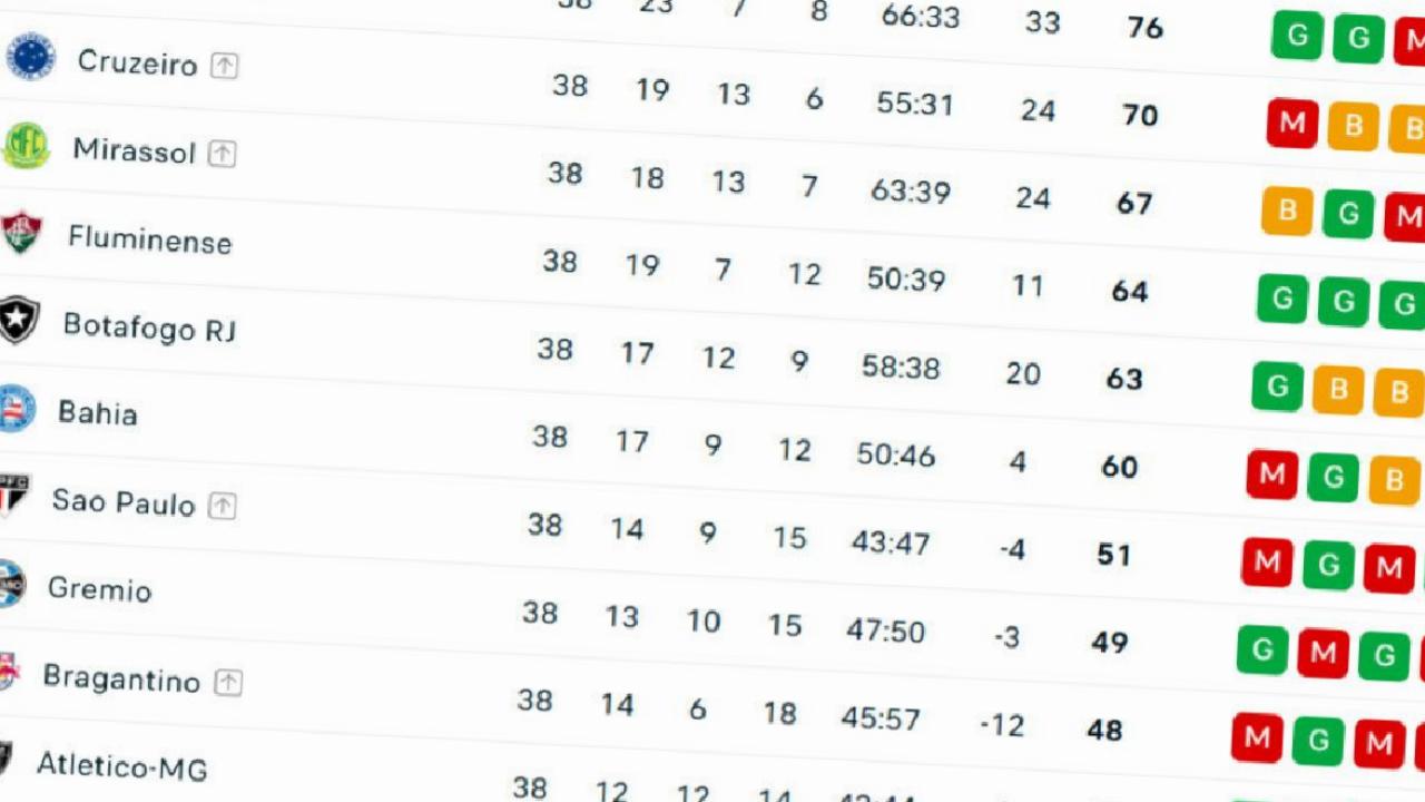 BREZİLYA LİGİ'NDE PUAN DURUMU