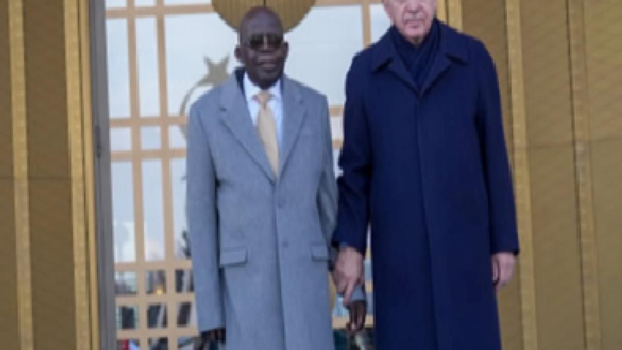 Türkiye ve Nijerya bayrakları önünde basın mensuplarına poz veren Cumhurbaşkanı Erdoğan ve Nijerya Cumhurbaşkanı Tinubu, daha sonra baş başa ve heyetler arası görüşmelerini gerçekleştirmek üzere Cumhurbaşkanlığı Külliyesine geçti.