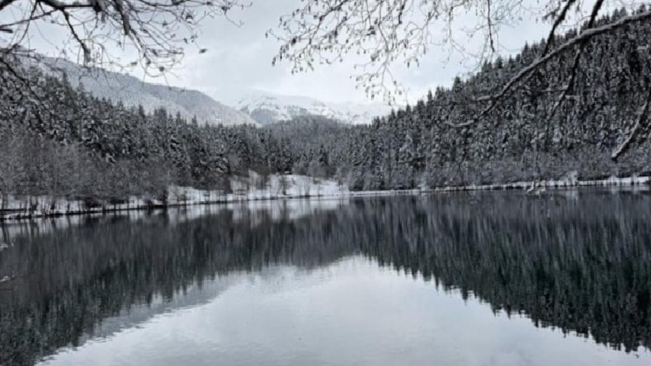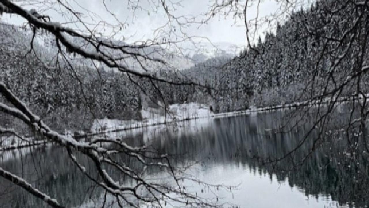 Artvin'in Şavşat ilçesinde hava sıcaklıklarının ani düşüşü, doğayı yeniden kışa çevirdi. “Sakin şehir” unvanıyla bilinen ilçede yer alan Karagöl Sahara Milli Parkı, beklenmedik kar yağışıyla birlikte tamamen beyaz örtüyle kaplandı.