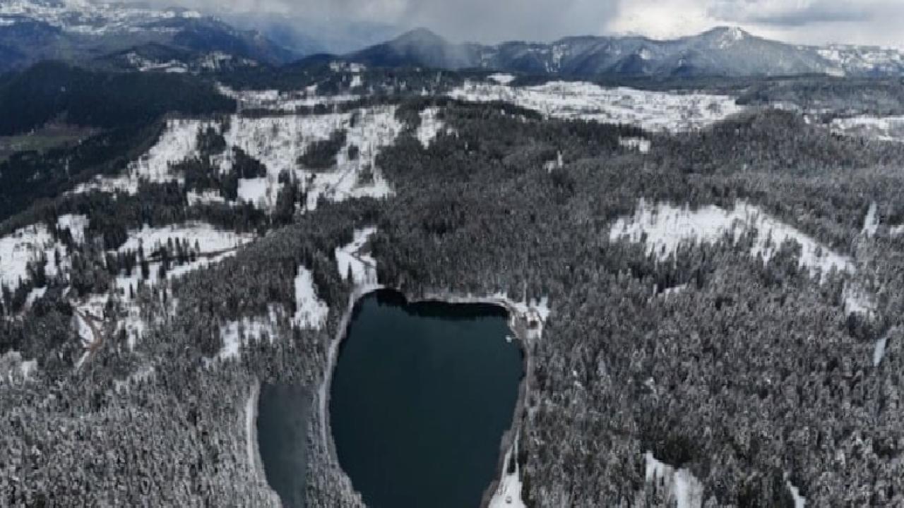 Beyaz örtüyle kaplanan milli park, özellikle doğa ve fotoğraf meraklılarının ilgisini çekiyor. Eşsiz manzaralar sunan Karagöl ve çevresi, dronla kaydedilen görüntülerle de kartpostallık kareler ortaya çıkardı.