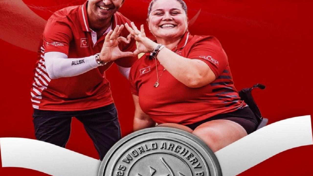 Öznur Cüre Girdi ile Kenan Babaoğlu'ndan oluşan Makaralı Yay Karışık Milli Takımı, gümüş madalya aldı.