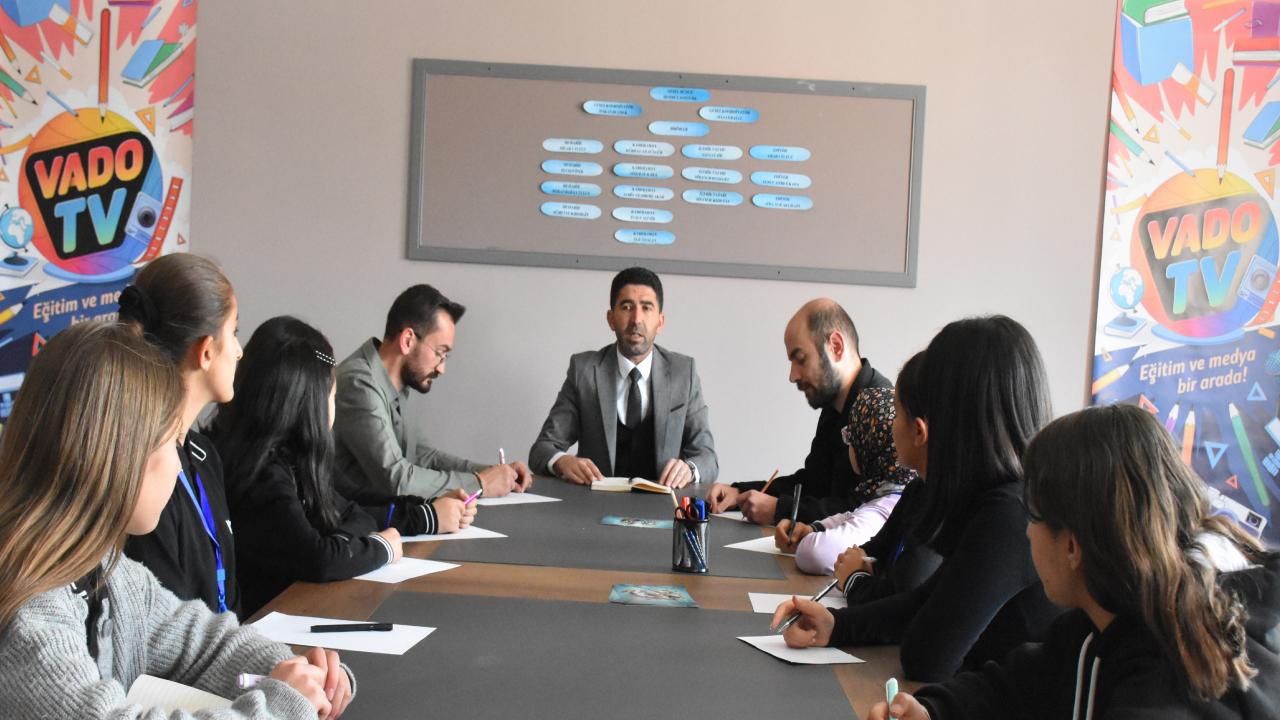 Gazete, televizyon ve internet sitelerinde yayınlanan haberleri öğretmenleriyle analiz ederek mesleğin inceliklerini öğrenen, bu alanda bölümleri bulunan meslek liseleriyle irtibat kuran öğrenciler, faaliyetlerine akademisyenleri, gazetecileri de dahil ederek kendilerini geliştirmeyi hedefliyor. "Herkes bu işe gönülden bağlı olduğu için güzel ürünler ortaya çıkıyor"Okul Müdürü Mehmet Sontürk, AA muhabirine, Türkiye Yüzyılı Maarif Modeli kapsamında geleceğin iletişimcilerini yetiştirdiklerini söyledi. Gazeteciliğe yatkın öğrenciler için VADO TV'yi kurduklarını belirten Sontürk, "Okullarımızda gazete ve dergi çıkarılıyordu fakat televizyon konusunda eksik kalmışız. Biz de 'Neden geleceğin sunucularını, muhabirlerini ve kameramanlarını yetiştirmeyelim.' dedik. Belki öğrencilerimizden biri ileride ulusal bir kanalda meslek sahibi olacak. Bu düşüncelerle projemizi hayata geçirdik." dedi.