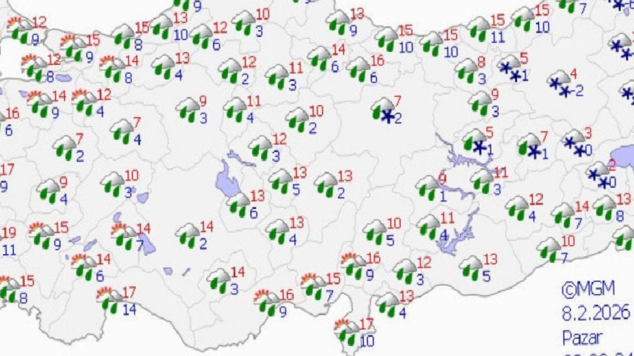 Pazar günü yağışlar batıdan doğuya doğru azalması, ancak İç Anadolu, Karadeniz ve Doğu Anadolu'nun bazı kesimlerinde devam etmesi bekleniyor.