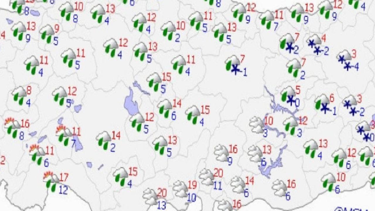 Doğu bölgelerde sıcaklıklar yüksek seyretmeye devam ederken, yüksek kesimlerde karla karışık yağmur veya kar görülebileceği düşünülüyor.