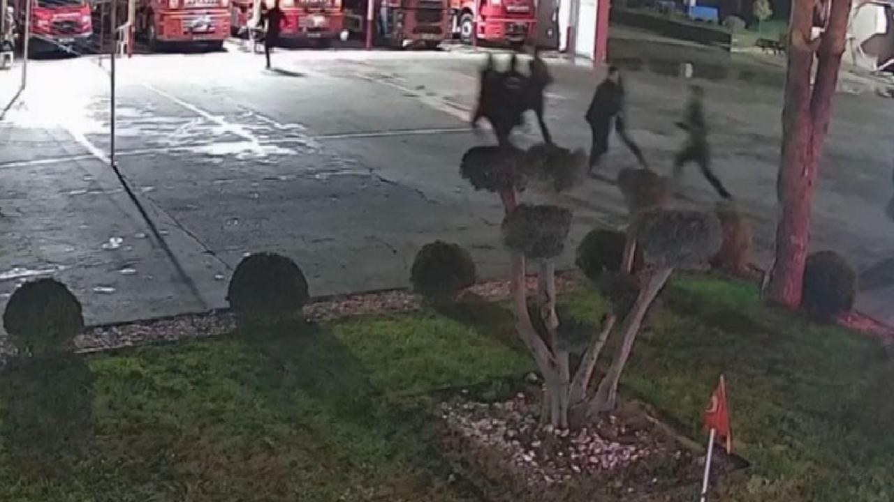 Kamera kaydında, itfaiyecilerin ihbara müdahale etmek üzere hızla hareket ettiği görüldü.