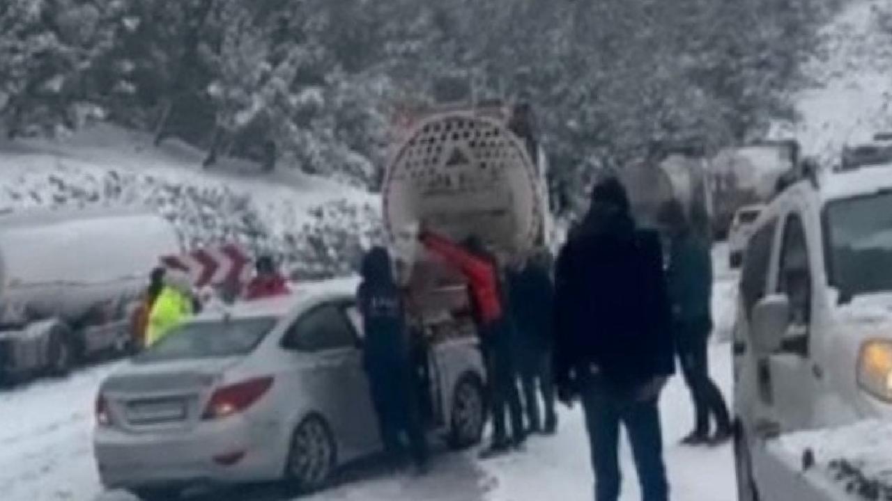 Yoğun kar yağışının etkisini sürdürdüğü bölgede görev yapan AFAD ekipleri, yolda mahsur kalan ve beklemek zorunda kalan sürücülere yiyecek ve battaniye dağıtarak destek sağladı.