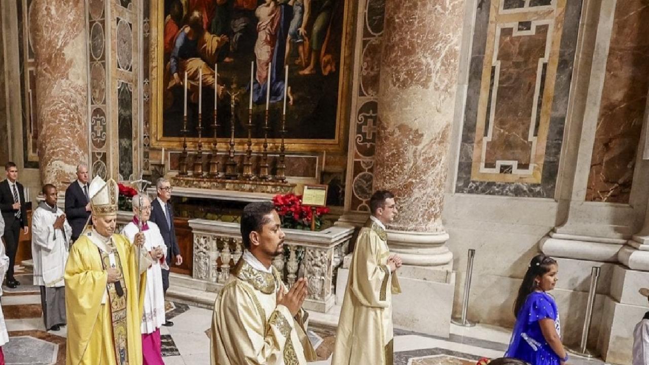 Vatikan'ın ünlü Aziz Petrus Bazilikası'ndaki Noel ayinine, Katolik Kilisesi'nden kardinaller, piskoposlar, rahipler ve Vatikan'a akredite kordiplomatik temsilciler ile çok sayıda davetli katıldı.