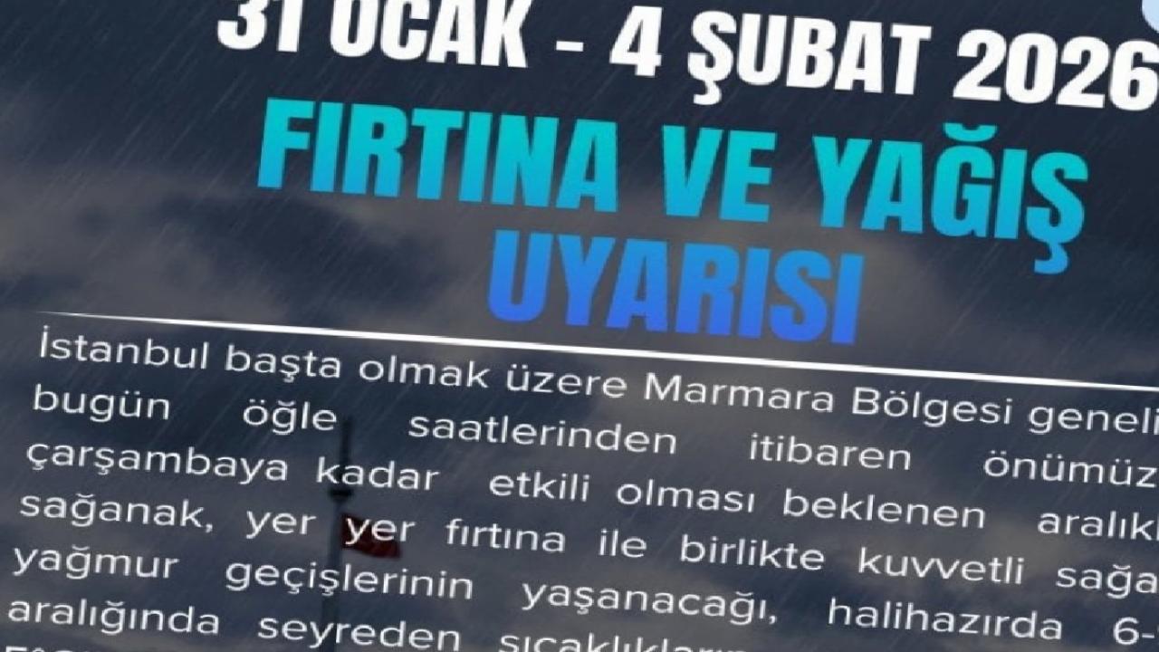 İstanbul Büyükşehir Belediyesi Afet Koordinasyon Merkezi'nden yapılan açıklamaya göre İstanbul başta olmak üzere Marmara Bölgesi genelinde 4 Şubat Çarşamba gününe kadar aralıklarla sağanak, yer yer fırtına ile birlikte kuvvetli sağanak geçişlerinin yaşanacağı öngörülüyor.
