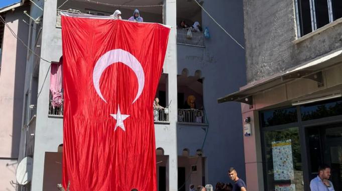 Türk bayrağı asılan şehit evine, yakınları ve komşuları taziye ziyaretinde bulunmaya başladı.