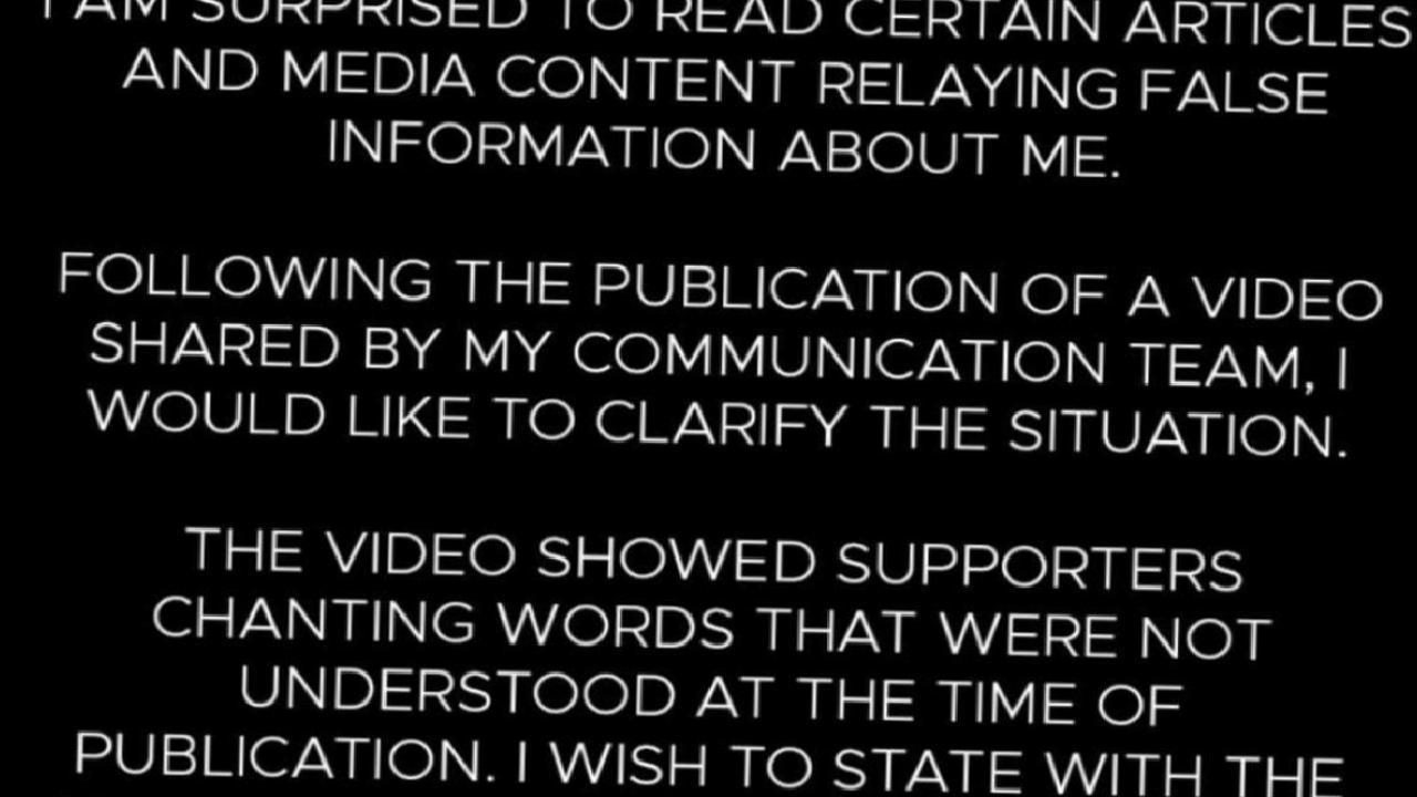 Videoda, paylaşım sırasında anlamı net olarak anlaşılmayan sözler söyleyen taraftarlar görülmektedir. En açık şekilde belirtmek isterim ki, bu sözler benim düşüncelerimi, değerlerimi ya da niyetlerimi kesinlikle yansıtmamaktadır. Hiçbir şekilde kimseye yönelik kırıcı, incitici ya da zarar verici bir mesajı teşvik etmedim, desteklemedim veya böyle bir niyet taşımadım.