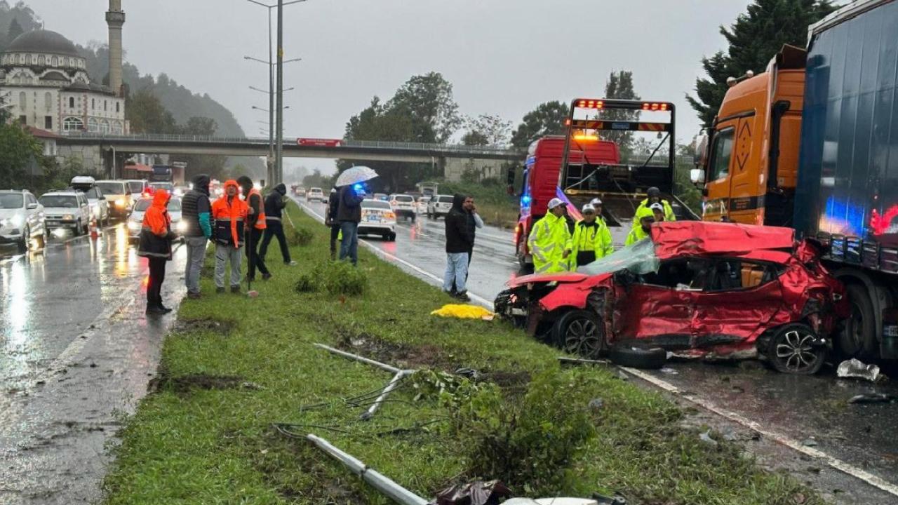 Rize’den Artvin yönüne giden 16 AIU 111 plakalı otomobil, kaygan yolda sürücüsünün kontrolünü kaybetmesi sonucu refüjü aşarak karşı yönden gelen bir TIR’a çarptı.